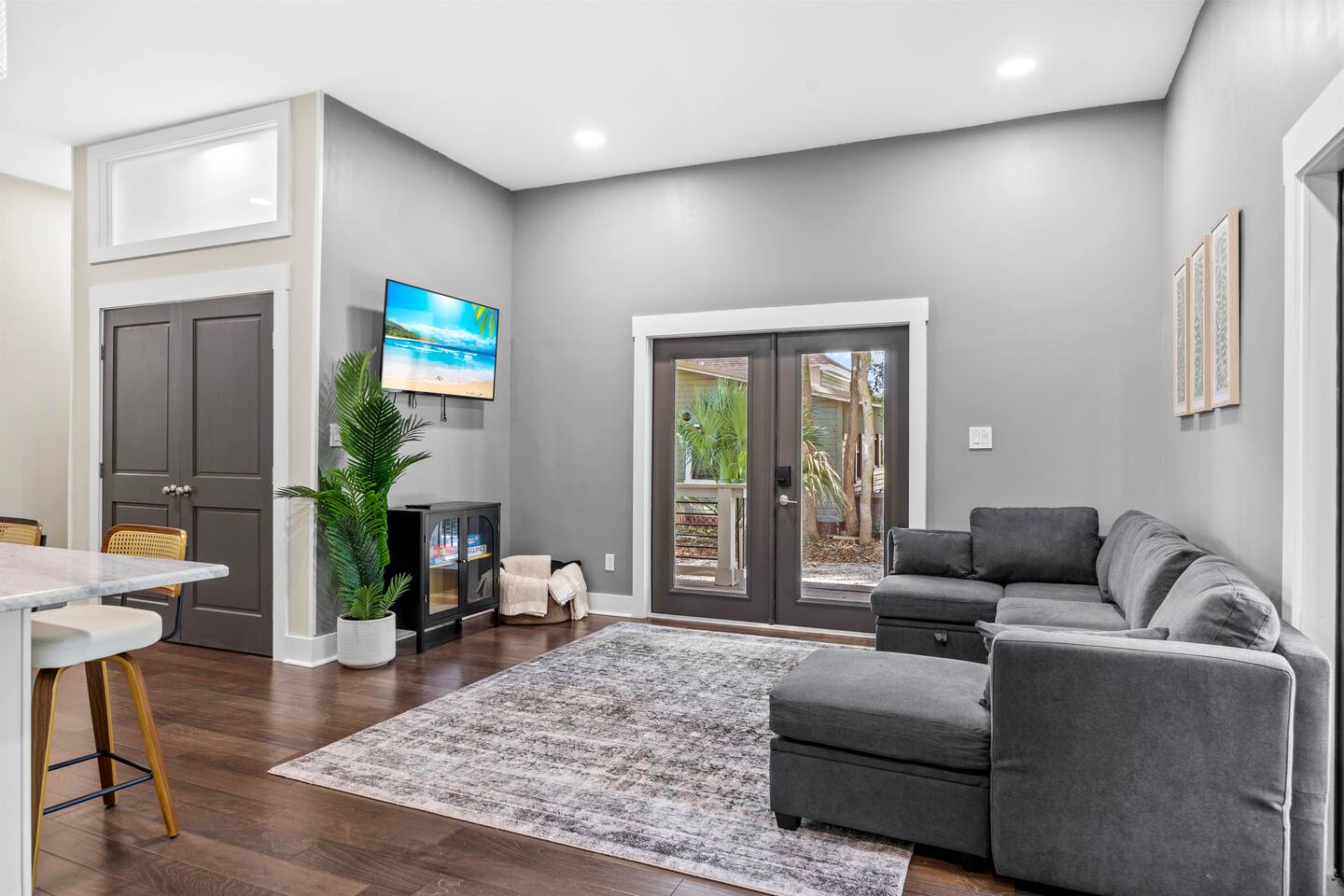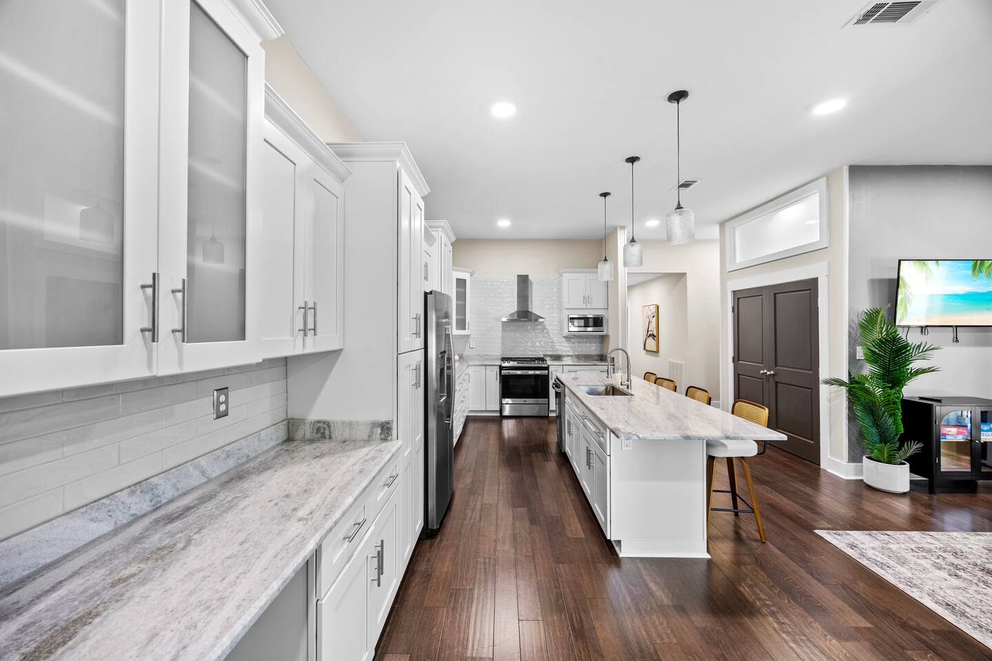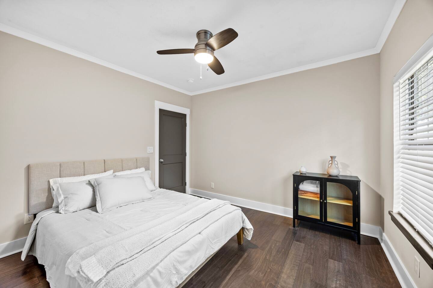 Enjoy a comfortable stay in this stylish 2-bedroom, 1-bath unit in a quiet neighborhood near downtown Pensacola. Features include an open-concept living area, a fully equipped modern kitchen with island seating, and a cozy living room with a smart TV. The spa-inspired bathroom offers a soaking tub and walk-in shower. Perfect for couples, small families, or business travelers. Minutes from downtown dining, shopping, and beautiful beaches.