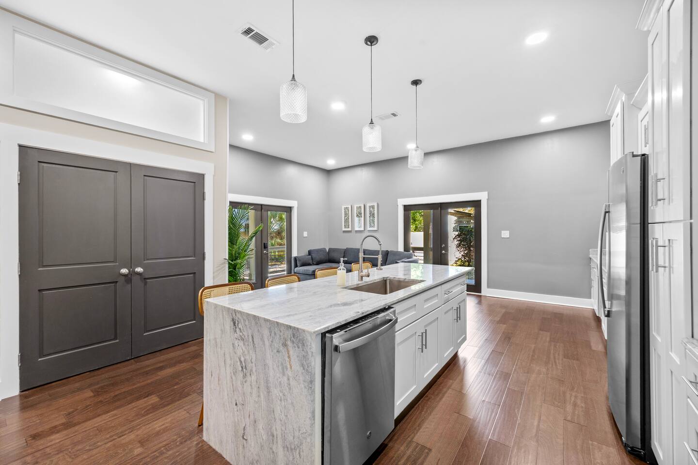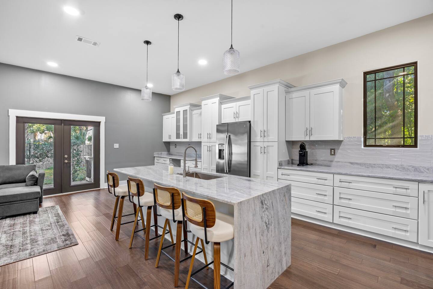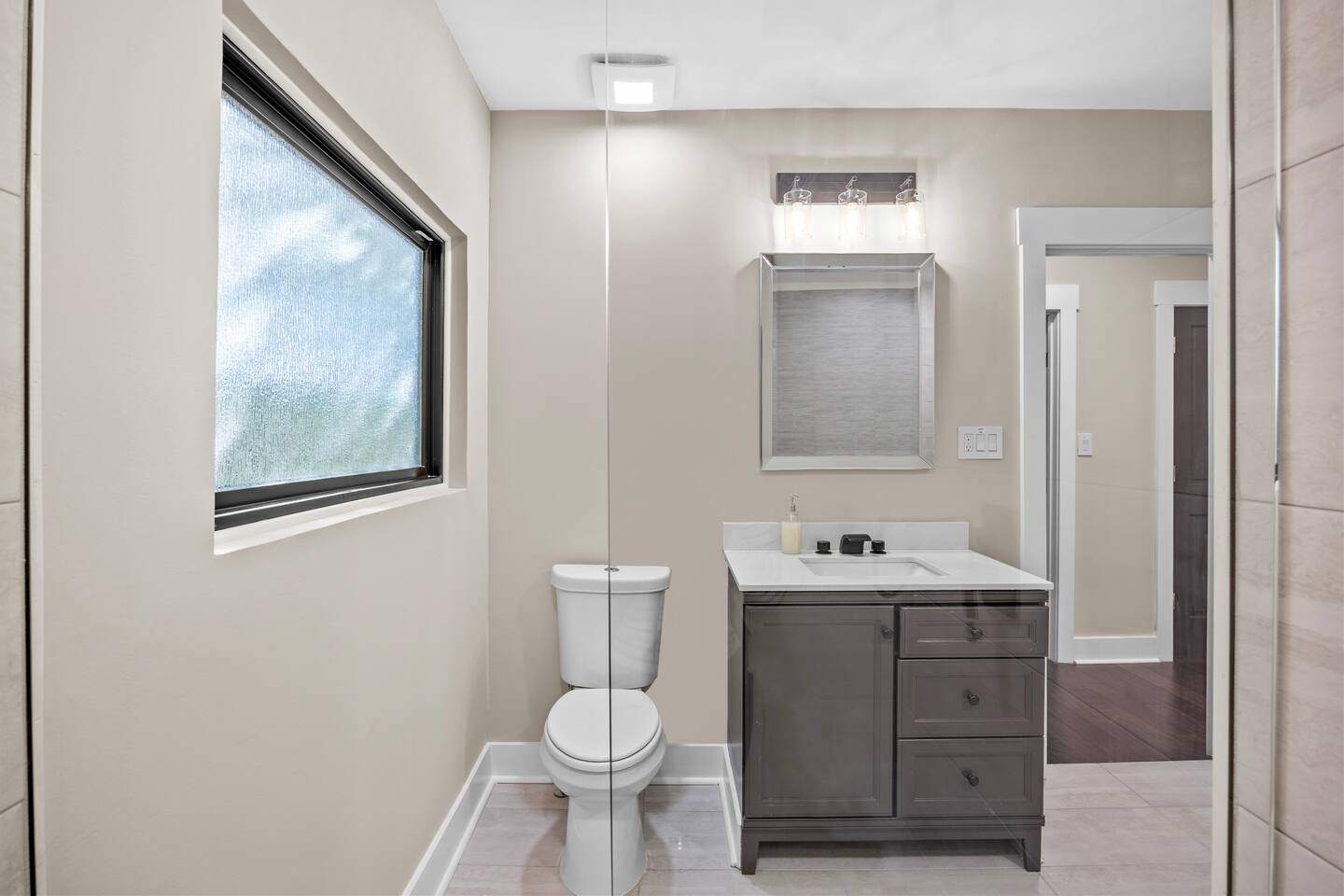 Enjoy a comfortable stay in this stylish 2-bedroom, 1-bath unit in a quiet neighborhood near downtown Pensacola. Features include an open-concept living area, a fully equipped modern kitchen with island seating, and a cozy living room with a smart TV. The spa-inspired bathroom offers a soaking tub and walk-in shower. Perfect for couples, small families, or business travelers. Minutes from downtown dining, shopping, and beautiful beaches.