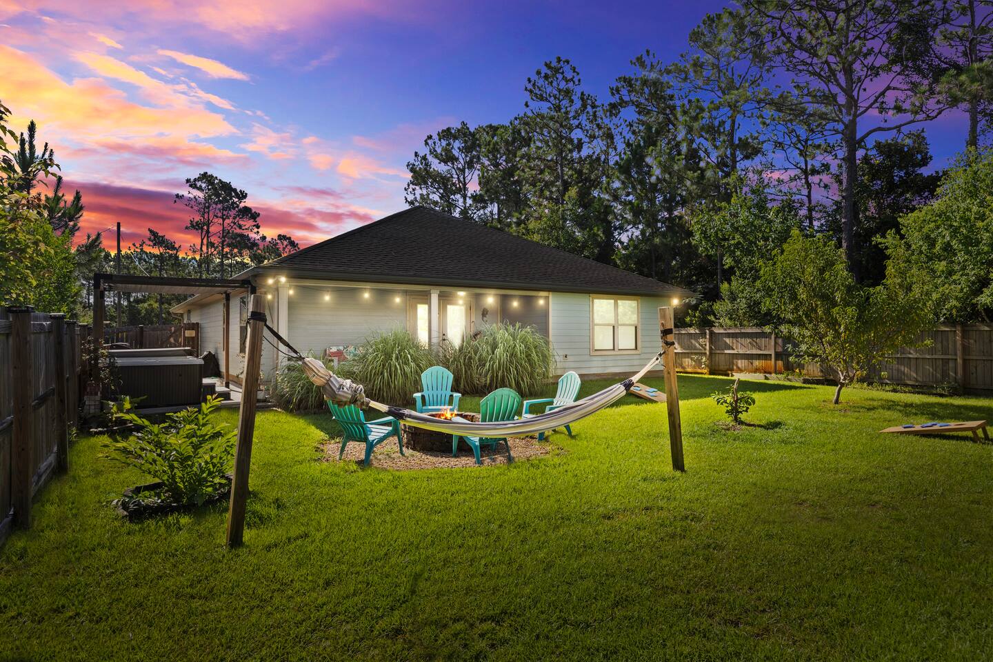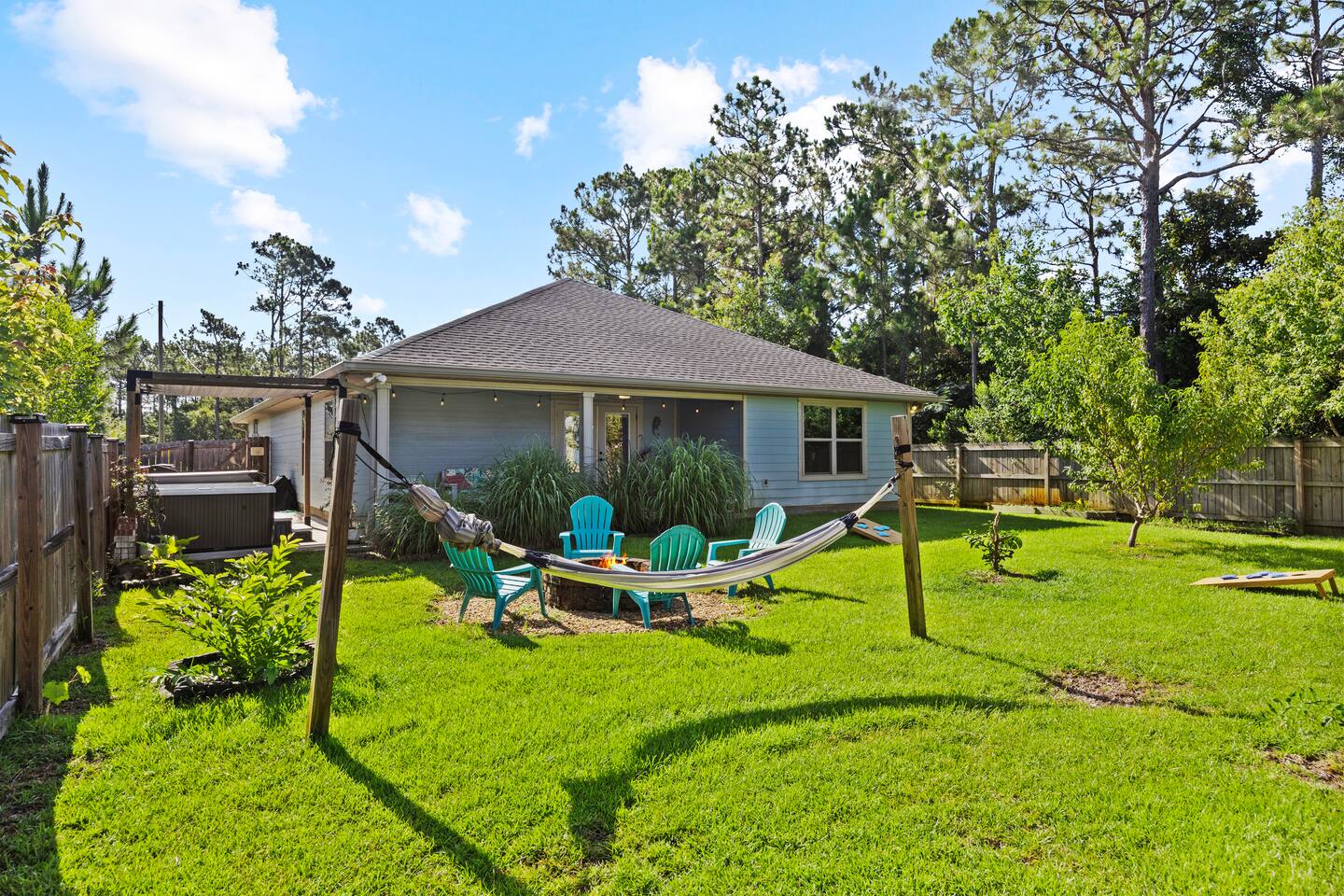 Key Amenities: - Beach items (floaties, beach chairs, umbrella) - Board games, puzzles, cards, and family games - Dishwasher - Fire pit - Grill - Hammock - Hot Tub - Portable Playstation - Washer/Dryer Things to do: - Scooter's Fish House (2 min drive) - The Slippery Mermaid Navarre (4 min drive) - Navarre Park (4 min drive) - Navarre Family Watersports and Pontoon Boat Rentals (5 min drive) - Navarre Beach Marine Park (6 min drive) - Sound Side Park (7 min drive) - Navarre Beach Fishing Pier (9 min drive) - Where Y’at Seafood Market & Restaurant (9 min drive) - Gulf Breeze Zoo (13 min drive)