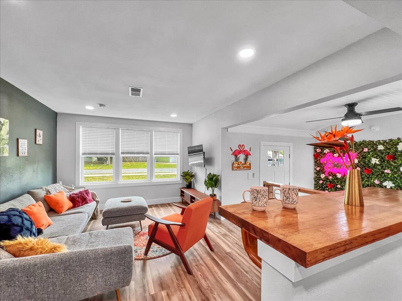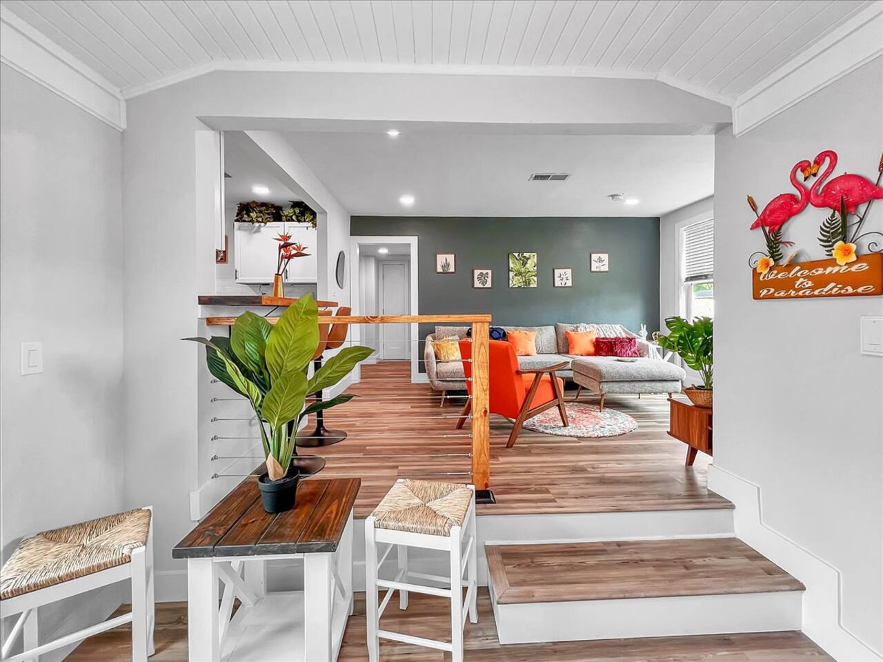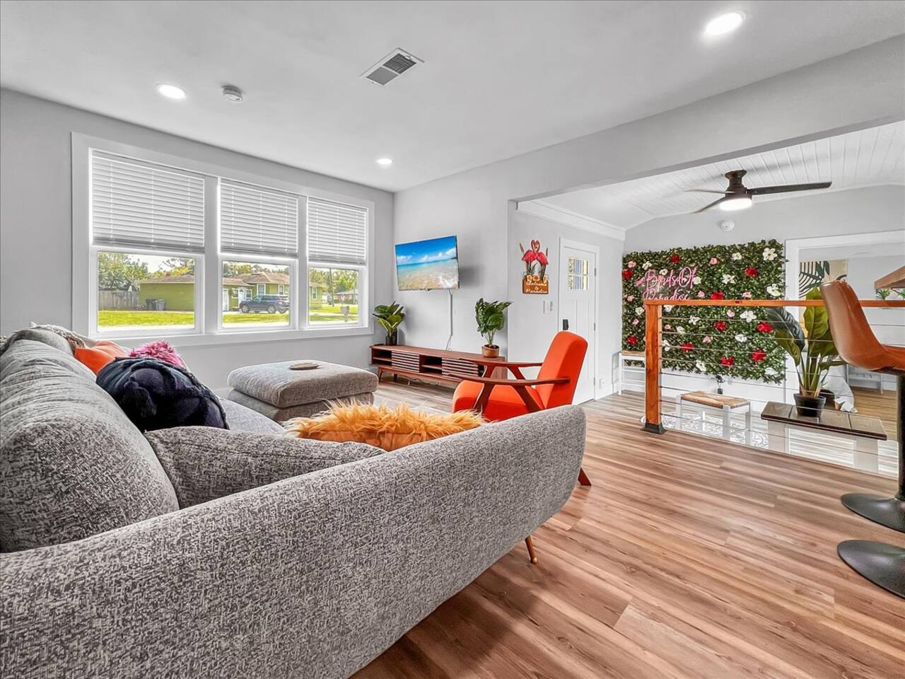 Welcome to 'Birds of Paradise' located within minutes of downtown and NAS Pensacola! This 4 bedroom, 2 bath home can comfortably sleep 9 and is the perfect for families or groups. Once inside, you'll find a charming foyer and perfect selfie wall. The fully equipped kitchen has stainless appliances and butcher block counters. There are 3 smart TVs, games for kids, and all comfort items! Outside you'll find a spacious, fenced backyard with a patio area, perfect for enjoying your morning coffee.