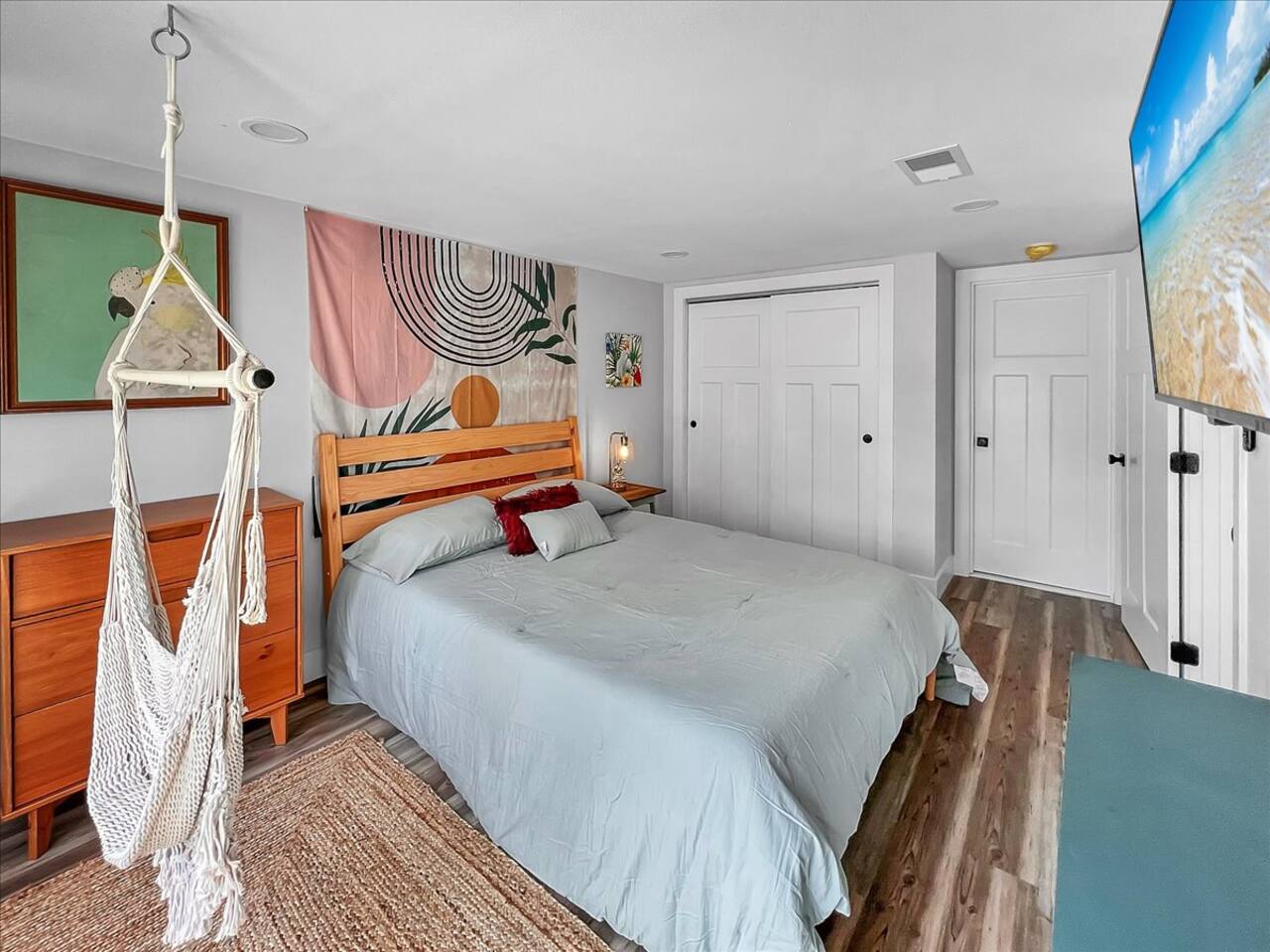 Welcome to our charming retreat! This well-equipped home offers a comfortable stay with modern amenities, making it ideal for families and beach enthusiasts. Features & Amenities: • Comfortable Living: Central air conditioning, ceiling fans, and portable fans ensure a pleasant atmosphere throughout the home. • Fully Equipped Kitchen: Includes a drip coffee maker, oven, stove, microwave, toaster, dishwasher, and essential cooking basics. • Family-Friendly: Enjoy a children's playroom, board games, high chair, Pack 'n Play, and children's dinnerware. • Convenience: In-unit washer and dryer, towels, bed linens, shampoo, conditioner, body soap, and cleaning products provided. • Entertainment: TV, WiFi, game console, and a private workspace for your enjoyment and productivity. • Outdoor Relaxation: Private fenced backyard with outdoor furniture, perfect for unwinding after a day at the beach. • Safety First: Equipped with smoke and carbon monoxide alarms, fire extinguisher, and first aid kit. 🌴 Nearby Attractions: • Downtown: just 8 minutes away! • Pensacola Beach: Approximately 20 minutes by, offering beautiful white-sand beaches and crystal-clear waters. • Big Lagoon State Park: About 18 minutes away, this 705-acre park features beaches, hiking trails, and wildlife viewing opportunities. • Pensacola Museum of Art: Located downtown, approximately 9 minutes away, this museum houses works by renowned artists like Andy Warhol and Salvador Dalí. • Palafox Place: A vibrant area downtown, about 10 minutes away, with dining, shopping, and entertainment options.