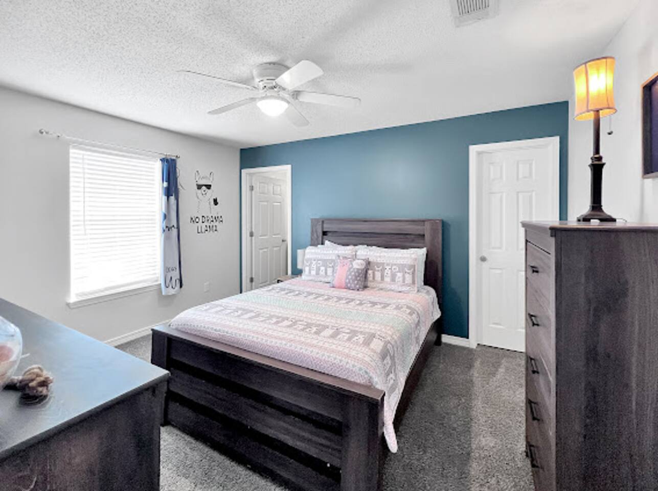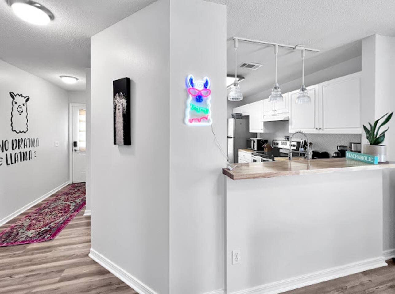 The interior of this home is cozy and welcoming, with plenty of space for everyone to relax and unwind. The llama theme is carried throughout the house, with adorable llama decor that will make you smile. You'll find all the amenities you need to make your stay comfortable, including a fully equipped kitchen, comfortable beds, a pack-n-play for the babies, and high-speed internet for the adults and teenagers. The location of this home is truly unbeatable. It's just four miles from Navarre beach, so you can easily spend your days soaking up the sun and enjoying the beautiful Gulf of America. And when you're ready for a break from the sand, you'll find plenty of restaurants within walking distance of the house. Whether you're in the mood for a sports bar, local pizza, or a refreshing drink at the Taproom, or a morning artisan coffee, you'll find all options just a short walk away. But perhaps the best thing about The No Drama Llama Near the Beach is the sense of fun and whimsy that it exudes. From the llama-themed decor to the comfortable furnishings and convenient location, everything about this home is designed to help you have a carefree and enjoyable vacation. Book your stay today and experience the magic for yourself!