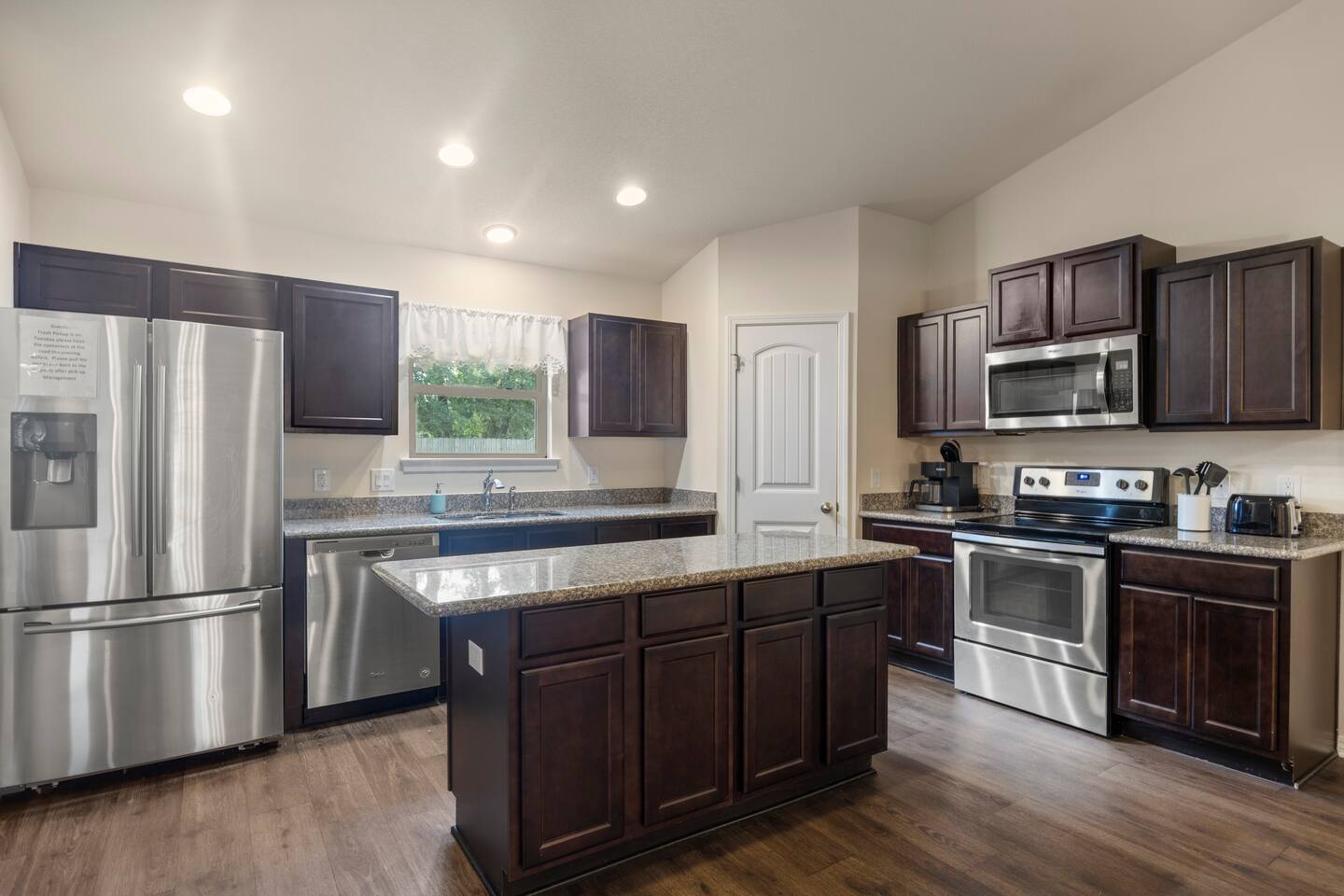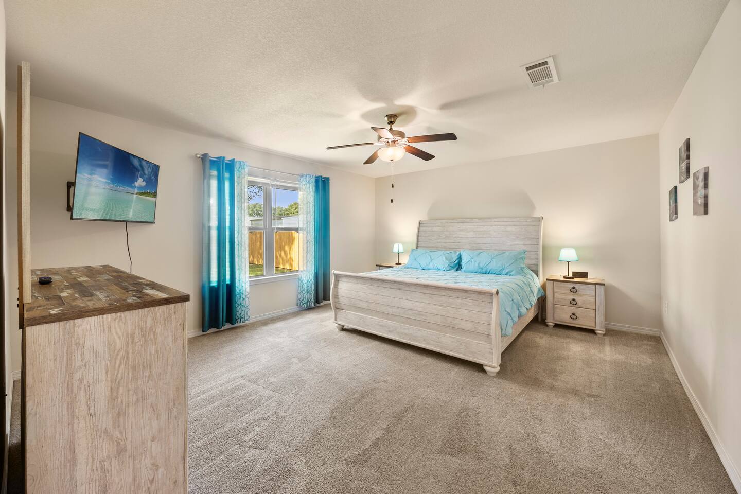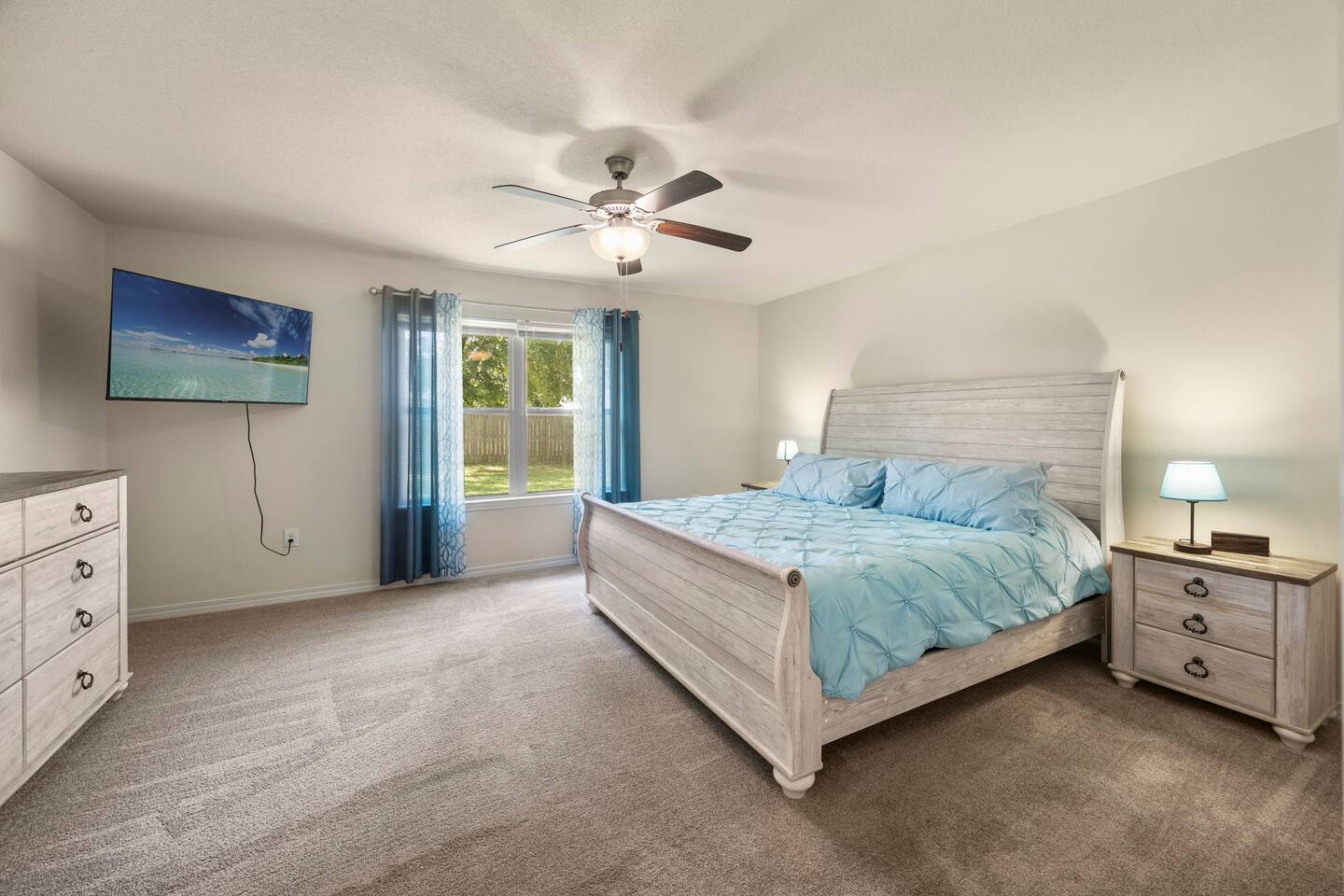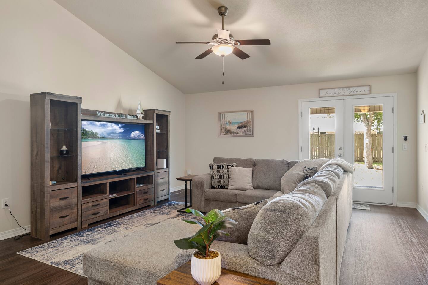 Discover your perfect escape in this nearly new open-concept home, designed for comfort and style. With four bedrooms and two bathrooms, the split floor plan offers space and privacy. Enjoy the airy living room and kitchen with cathedral ceilings, granite countertops, and a cozy breakfast bar. Relax in the spacious backyard after a day at Navarre’s sugar sand beaches. For added fun, a karaoke setup is ready to keep the entertainment going. Your ideal vacation retreat awaits!