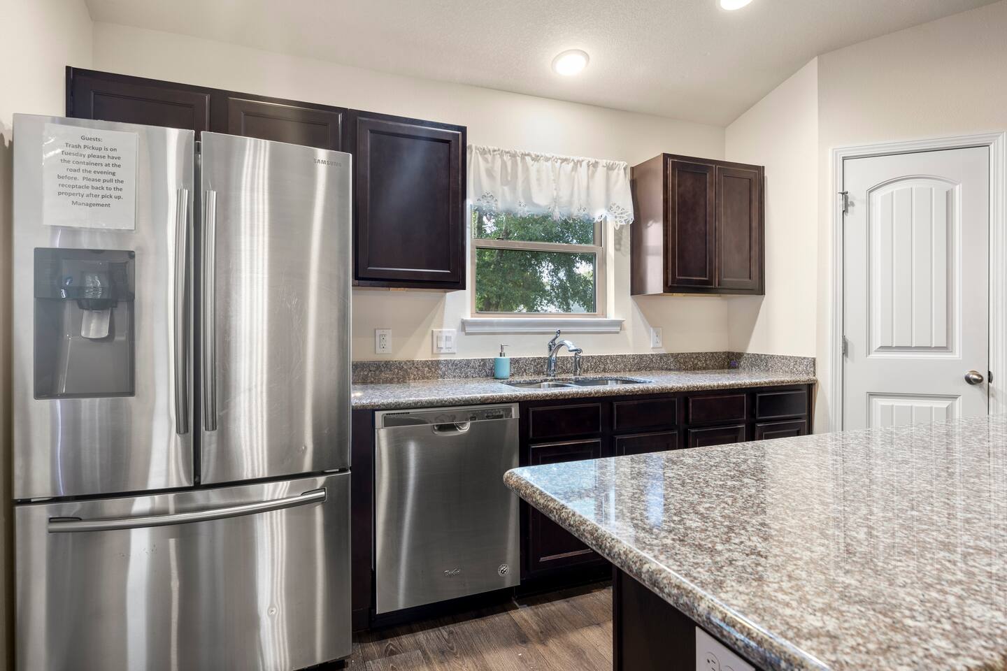 Welcome to your perfect getaway! This stunning, nearly new open-concept home offers a spacious and inviting atmosphere for your stay. With four bedrooms and two bathrooms, this split floor plan provides ample privacy and comfort. The living room and kitchen feature soaring cathedral ceilings, granite countertops, and a cozy breakfast bar perfect for morning coffee or casual dining. Step outside to enjoy the large backyard, ideal for relaxing or entertaining. Located just a short distance from the sugar sand beaches and emerald green waters of Navarre, this home is your ultimate vacation retreat!