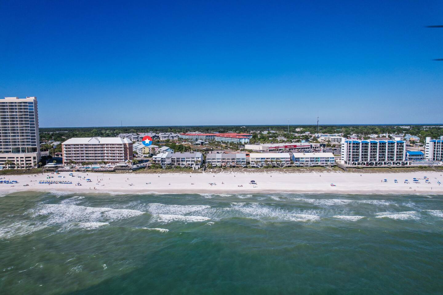 Key Amenities: - Community beach access - Beach essentials - Keurig coffee machine - Community pool - Private balcony - Washer/Dryer Location: - Beach Access (3 min walk) - Winn-Dixie (5 min walk) - Jeremiah's Italian Ice Cream (5 min walk) - McGuire's Irish Pub (5 min walk) - Pier Park (10 min drive)