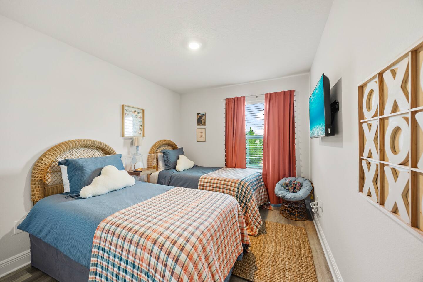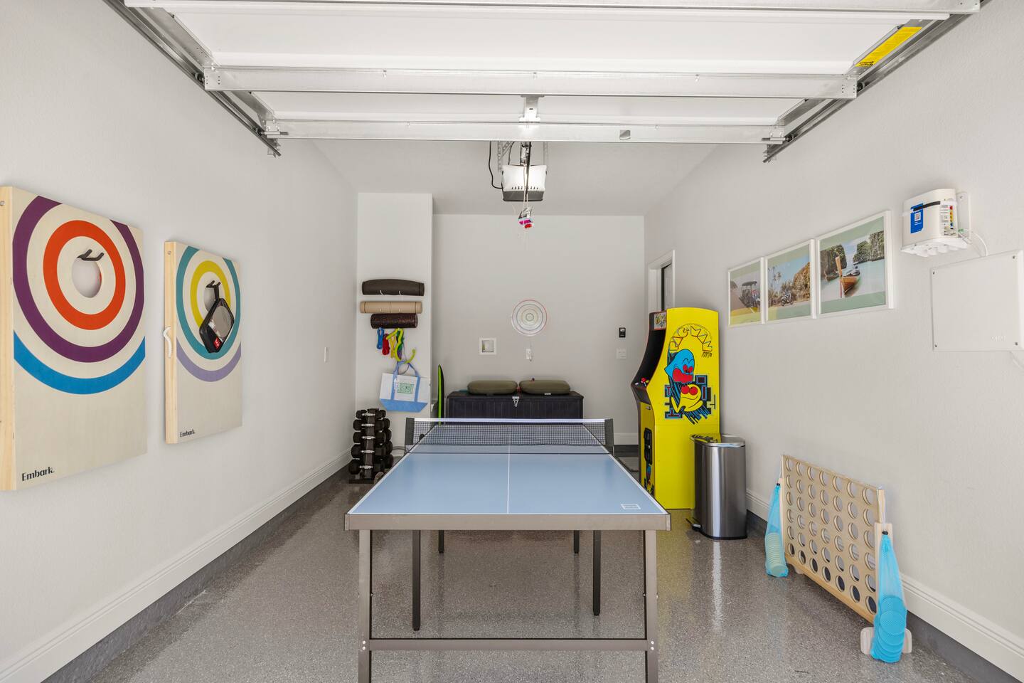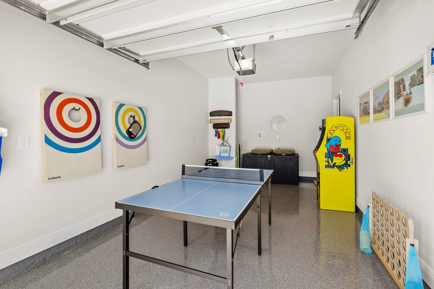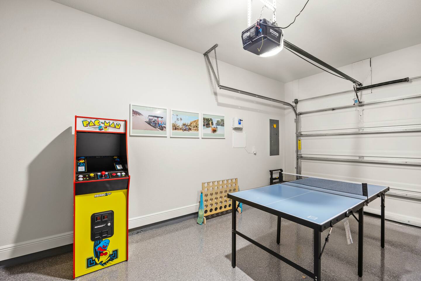 Key Amenities: - Beach gear (beach umbrella, boogie boards, chairs, sand toys, beach mat, spikeball, and wagon) - Board games, puzzles, cards, and family games - Dedicated workspace with a criss-cross chair - Infinity game table with 100 games - Filtered water (sink & fridge) - Full-size washer and dryer - Fully-equipped kitchen - Garage game room (arcade machine, cornhole set, giant connect four, ping pong table, and dart board) - King, queen, and 2 twin stay-cool mattresses - Pack N' Play - Roll-away bed - Starter set of bath, kitchen, and laundry amenities - Sunrise alarm clocks and sound machines in each bedroom - Workout Essentials (kettlebell, resistance bands/stretch bands, set of dumbbells, yoga/exercise mats, and yoga block) Things to do: - Panama City Beach Public Beach Access 36 (2 min drive and 11 min walk) - Coconut Creek Family Fun Park (3 min drive) - Ripley's Believe It or Not! (3 min drive) - WonderWorks (3 min drive) - Shipwreck Island (4 min drive) - Big Easy Restaurant & Bar (6 min drive) - Picos On Back Beach (7 min drive) - Pineapple Willy's Restaurant (7 min drive) - St. Andrews State Park (12 min drive) - Aaron Bessant Park (13 min drive) - SkyWheel (13 min drive)