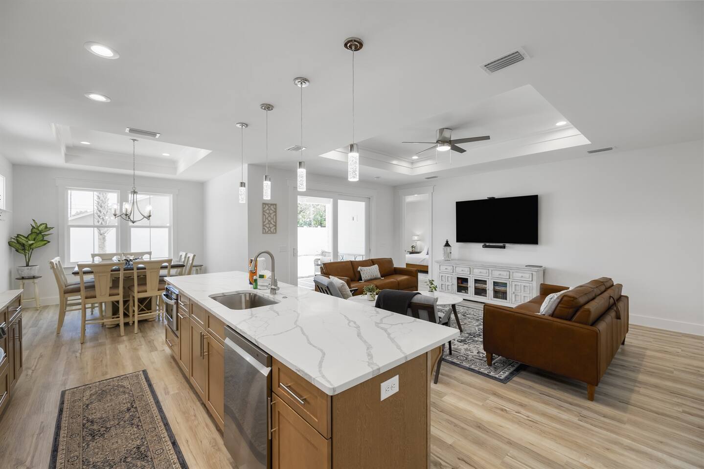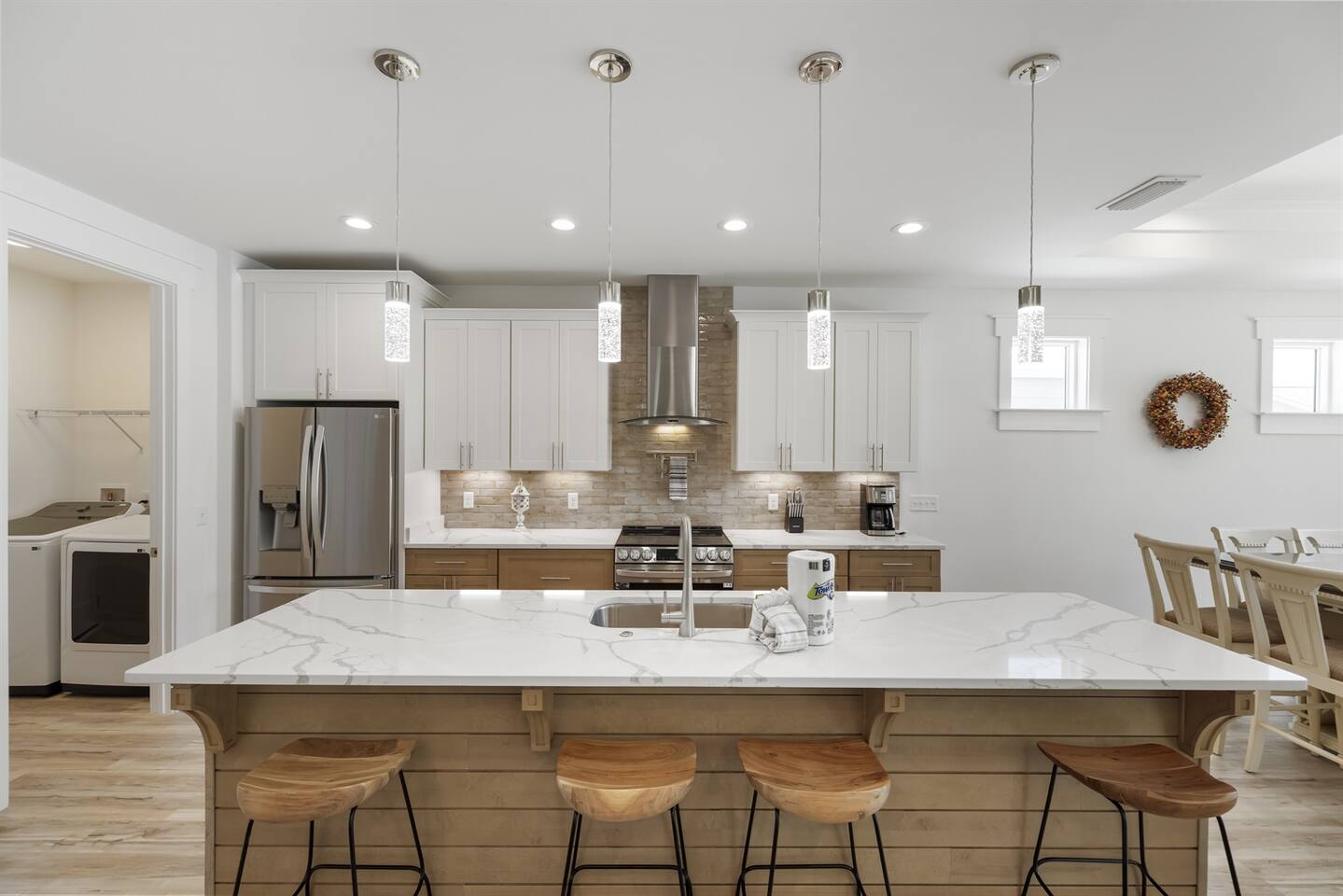 This brand-new beach home is perfect for a fun family getaway! Relax in the luxurious master suite with a king bed and private bath. The spacious second bedroom features a queen bed, while the bunk room offers twin and full-sized bunks with easy access to the top bunks. Plus, two premium sofa sleepers in the main living area provide extra flexibility. Ideal for two families or a larger family with in-laws—everything you need for a memorable vacation!