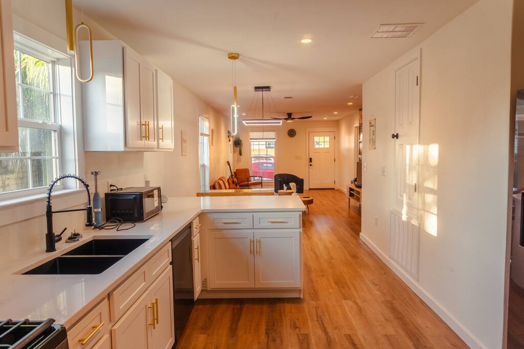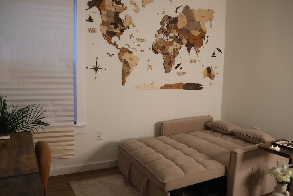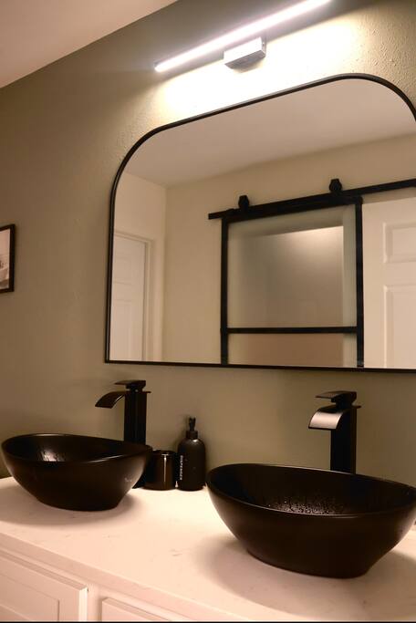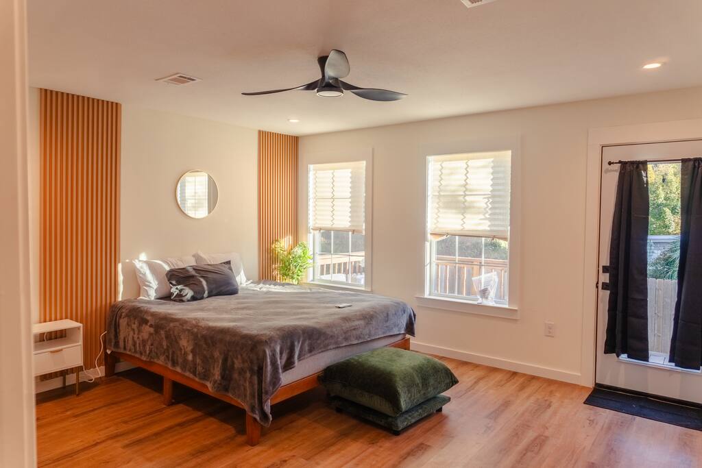 Master Suite – A Private Oasis Step into the luxurious Master Suite where comfort meets elegance. This spacious retreat boasts a private balcony, perfect for morning coffee or winding down under the stars. The ensuite bathroom is pure relaxation, featuring a rain head shower with a handheld sprayer, and sleek modern finishes and tons of natural lighting that create a calming atmosphere. The Cali king-sized bed, plush linens, and natural tone curtains only enhance the atmosphere. Travel-Themed Office – Connect & Explore Need to mix business with adventure? The Travel-Themed Office is more than just a workspace—it’s an interactive experience! A massive wall-sized map invites you to leave your mark by pinning where you’re from, giving you a glimpse of the diverse travelers who’ve stayed before you. Whether you're working remotely or planning your next trip, this space offers a stylish desk, cozy chair & couch, a small pullout bed if needed, warm lighting, high-speed WiFi, and plenty of charging ports. Gourmet Kitchen – A Chef’s Dream The heart of the home, the gourmet kitchen, is fully equipped with granite countertops, smart appliances, soft-close cabinets, under-glow lighting, and a high-end gas stove. A built-in pot filler makes cooking even more convenient. Whether you're whipping up a quick breakfast or a gourmet meal, this kitchen is designed to impress. Living Room – Midcentury Modern Comfort Designed with a midcentury contemporary flair, the living room is the perfect blend of style and comfort. A leather couch, sleek modern décor, and a large Smart TV create a warm yet sophisticated vibe. In the corner, a cozy reading nook with soft LED lighting offers the perfect spot to unwind with a book. The open-concept design seamlessly connects the space to the kitchen, making it easy to chat, cook, and entertain all at once.. Space Room – Sleep Among the Stars Step into the Space Room, where a cosmic adventure awaits! Designed to capture the wonder of the galaxy, this bedroom features a celestial-themed mural, glowing LED accents, and sleek, modern décor that brings the universe to life. Soft, high-quality linens ensure a restful night, while a spacious closet and thoughtful touches make your stay comfortable. Whether you're a stargazer or just love a unique vibe, this room offers a truly out-of-this-world experience! 🚀✨ Minimalist All-White Room – Serenity & Style Step into pure tranquility in the Minimalist All-White Room, designed for those who appreciate clean lines, simplicity, and a calming atmosphere. The sleek floating bed, illuminated by soft LED lighting that matches the modern nightstands and floating wall clock, creates a futuristic yet cozy ambiance. Crisp white walls, plush bedding, and soft ambient lighting make this the perfect retreat. A spacious closet and uncluttered design complete this effortlessly stylish space. Bathrooms – Spa-Like Luxury Every bathroom in this home is designed for relaxation, featuring rain head showers, handheld sprayers, and modern vanities, Floor to ceiling ceramic tiling & a standalone tub. The thoughtful design and sleek finishes make getting ready feel like a spa experience. Outdoor Space – Relax & Unwind Step outside to enjoy fresh air and good vibes. Whether you're sipping wine on the private balcony, enjoying a morning coffee, or planning an evening under the stars, this home offers plenty of ways to soak up the atmosphere. This home isn’t just a place to stay—it’s an experience. Whether you’re here to explore, relax, or work, every space has been designed with comfort, style, and convenience in mind. Book now and enjoy Pensacola in the best way possible!