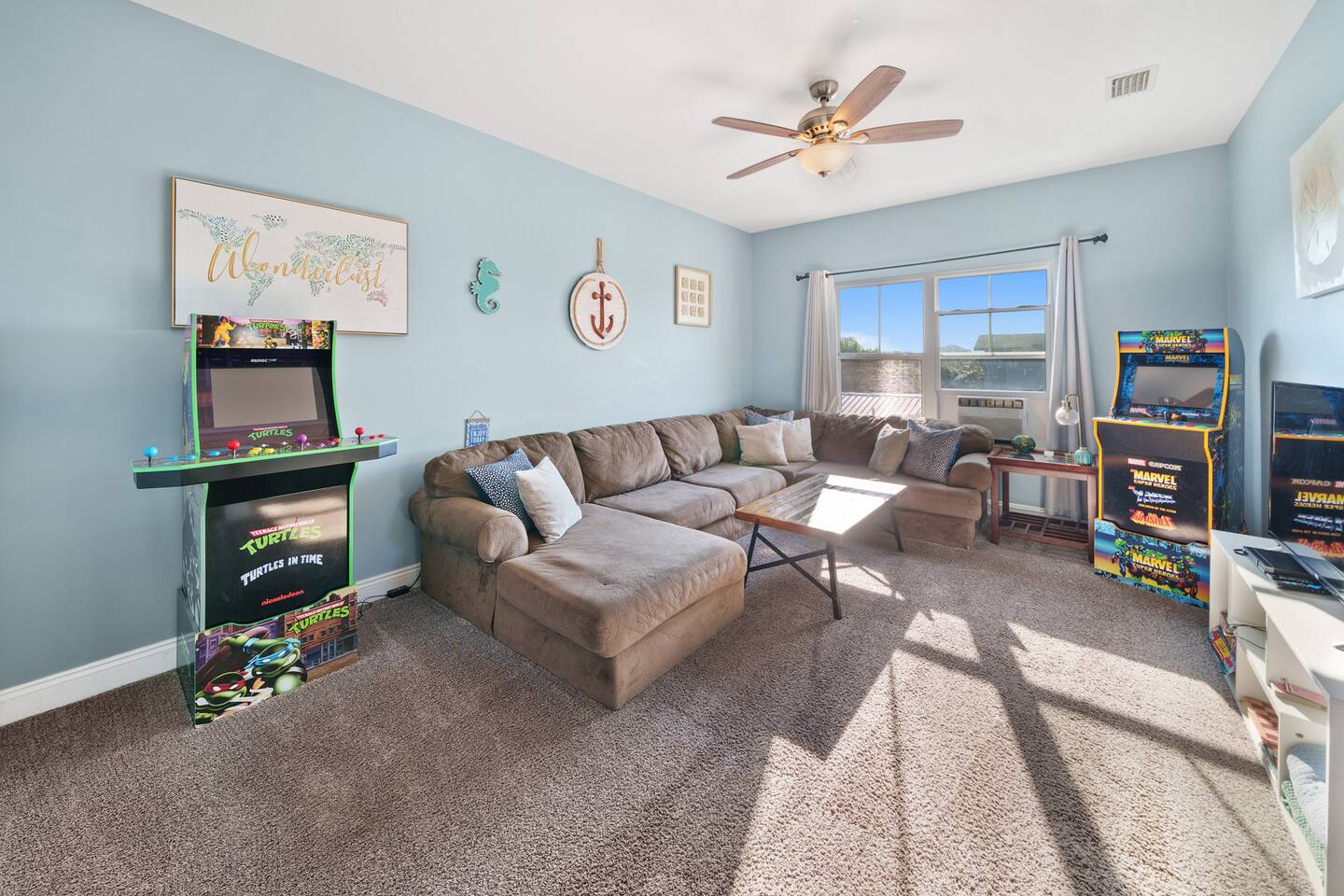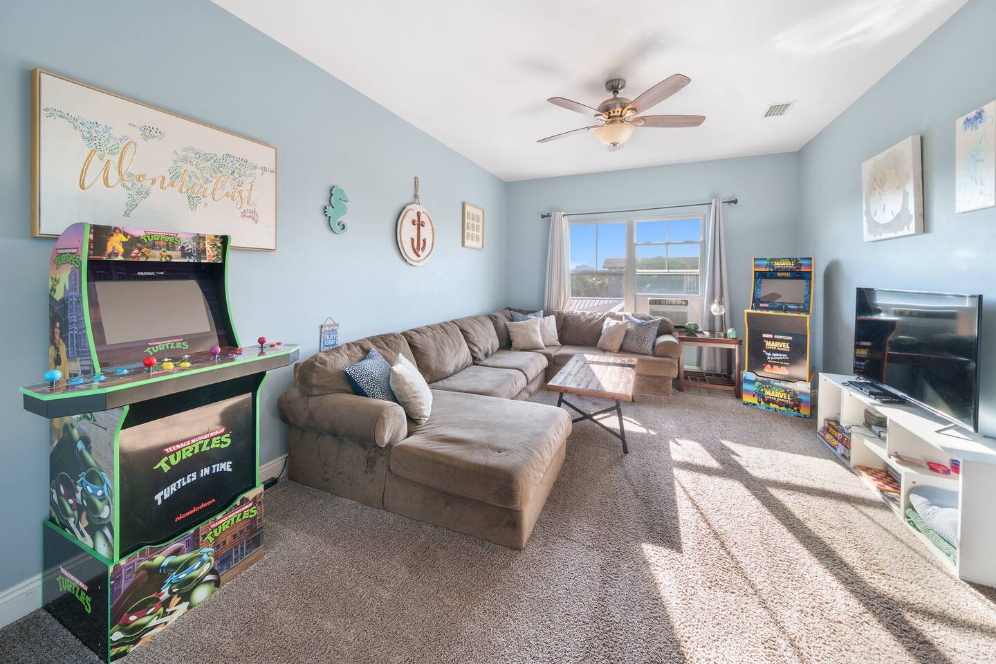 Make unforgettable memories in our 1824 Sq. Ft. 2-story beach home for your family's next beach trip! This home offers 2 living rooms, perfect for lounging, games, and relaxing. You’ll love the arcade machines—great for fun after a day at the beach! Only a short walk to the beach, our home lets you enjoy the best of a beach trip—sun, sand, and endless entertainment for the entire family. Whether you’re here for a relaxing escape or an action-packed stay, this home has something for everyone.