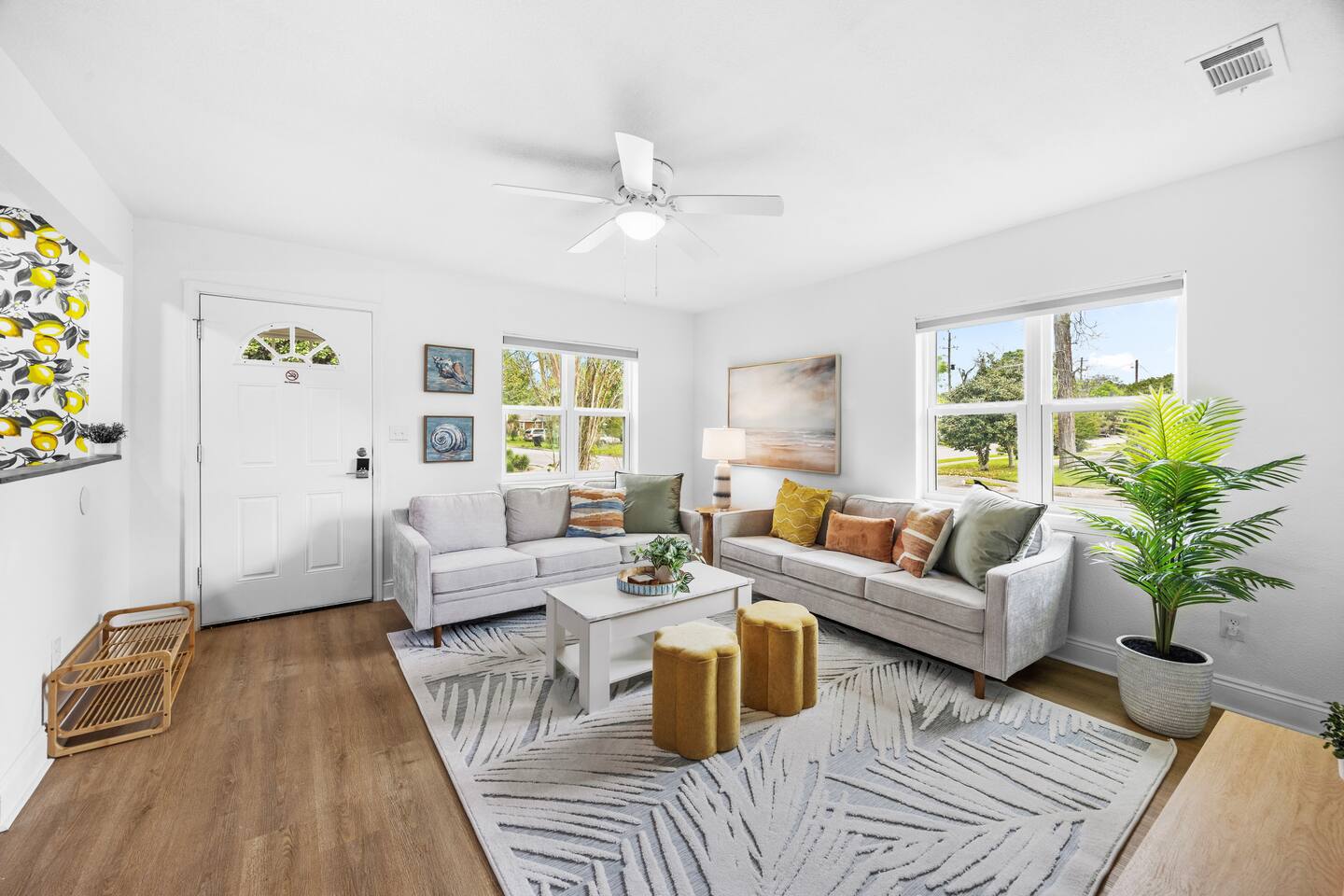 Welcome to East Scott Home, your perfect getaway in Pensacola! Located just 5 minutes from downtown, this charming residence offers a spacious and comfortable environment for families. This home now (as of Sept 2025) has a fully fenced backyard!