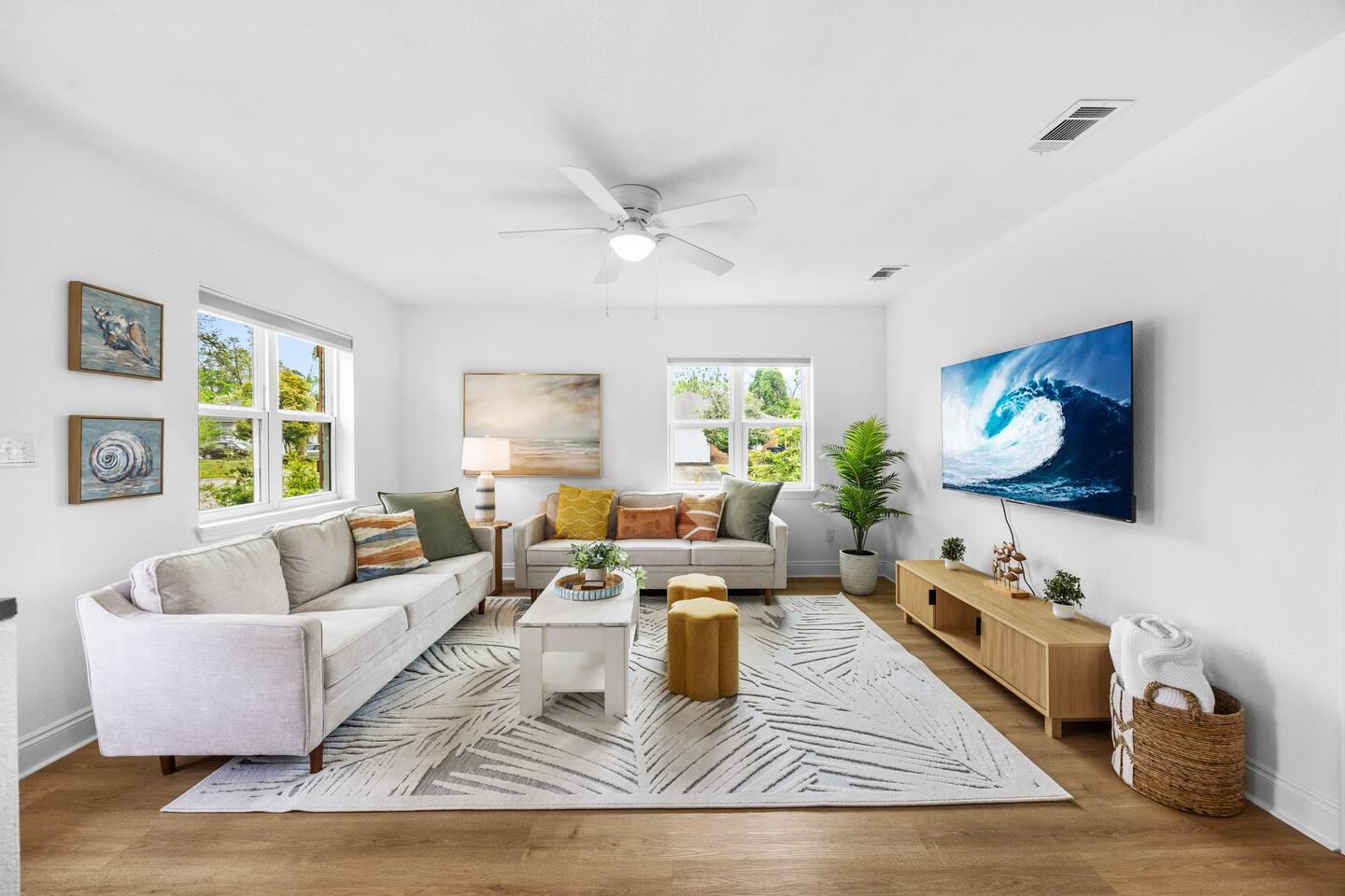 Welcome to your perfect home away from home! This stylishly decorated retreat is designed with both comfort and fun in mind. Kids will love their very own playroom stocked with toys and games, while adults can take advantage of the dedicated desk area for remote work or planning adventures. Enjoy cooking in the fully renovated kitchen, complete with modern appliances. We’ve got you covered with beach towels for your beach outings, and every corner of the home is thoughtfully styled to create a warm, inviting atmosphere. Perfect for families or anyone seeking a relaxing stay!